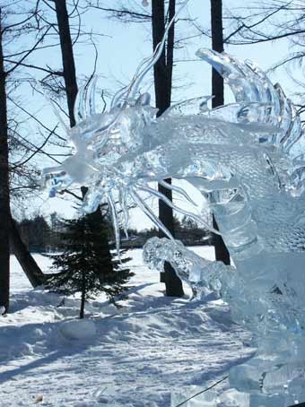 そんな中から、氷彫の部の作品を何点か撮りました。気温が上がったとは言え、バッテリはあがるし、メモリ用のドライブは回らなくなるし(あ、私普段はカードじゃなくマイクロドライブというハードディスクに画像保存してるんです)大変でした。やはり、冬用にメモリカード必要ですね。