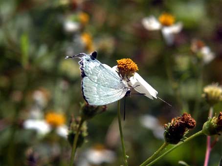 何だか調子が出てきたぞと、ほくそ笑んでいたら、何やら見たこともない蝶が…裏が緑色で、表は黒っぽい。もしかしたら、イワカワさんじゃぁありませんか! |