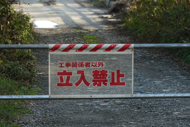 行止めと書かれたコーンが並んでいました。 |