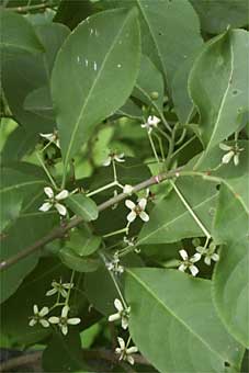 ニシキギ科であるが、枝にコルク質の翼はない。葉は2〜7cmでマユミより小ぶり。実もマユミと違って丸形である。